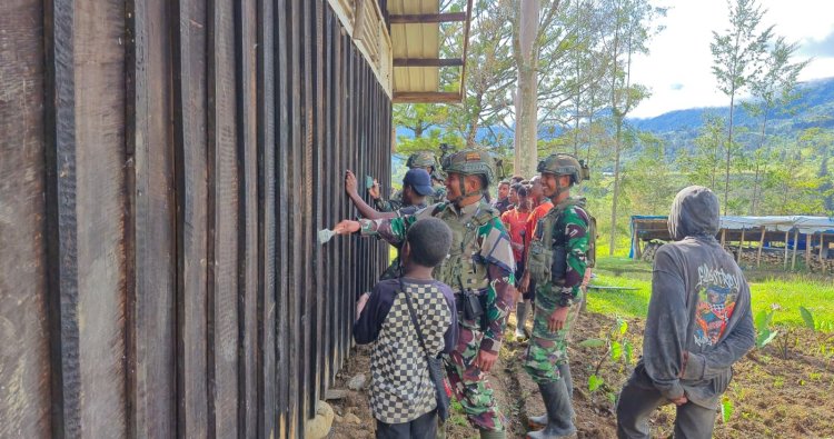 PUNCAK - Di tengah kehangatan udara pegunungan Papua, sebuah senandung harapan menggema di SMA Kristen Omukia, Distrik Omukia, Kabupaten Puncak. Pada Rabu, (12/11/2025), personel Satgas Yonif 700/Wira Yudha Cakti (WYC) dari Pos Titik Kuat Bendungan berkolaborasi dengan para pendidik dan siswa untuk menciptakan suasana belajar yang lebih ceria. Momen ini menjadi saksi bisu semangat gotong royong yang tak hanya mewarnai dinding sekolah, tetapi juga menorehkan kisah persaudaraan.