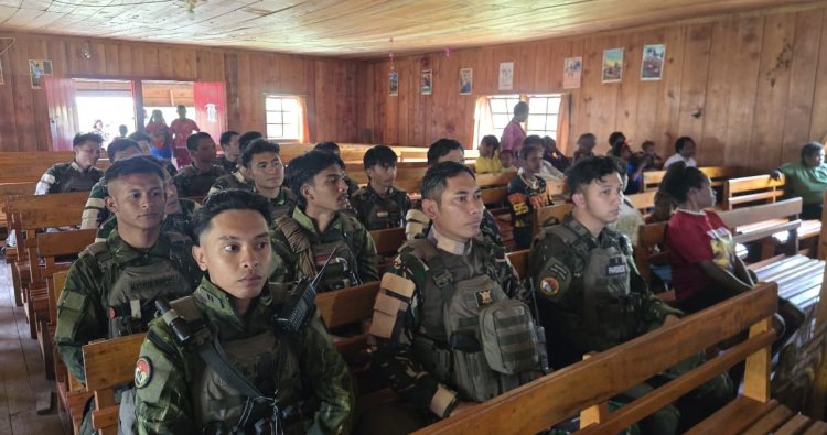 Cahaya mentari yang menyusup melalui celah dinding kayu gereja seolah membingkai pesan damai yang dibawa oleh para seragam loreng ini. Mereka hadir bukan hanya sebagai penugasan pengamanan wilayah semata, tetapi lebih jauh, sebagai saudara, sahabat, dan bagian dari jemaat yang merindukan keteduhan.