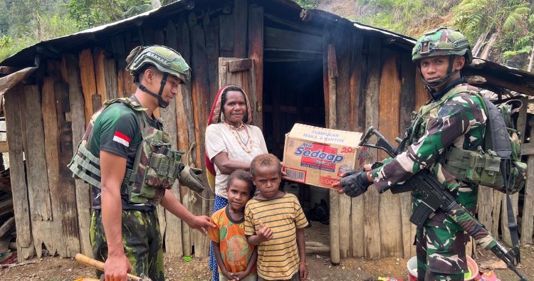 Paket sembako disalurkan kepada mereka yang paling membutuhkan, terutama para lansia dan anak-anak yang wajahnya merekah penuh senyum. Lebih dari sekadar berbagi kebutuhan pokok, para prajurit TNI ini juga turun langsung memperbaiki atap rumah warga yang bocor atau dinding yang mulai rapuh. Ini adalah bukti nyata kehadiran negara, menjangkau hingga ke pelosok Papua.