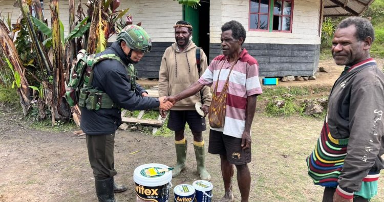 Pada Senin, (8/12/2025), Satgas Pamtas RI-PNG Mobile Yonif 113/Jaya Sakti (JS) melalui Pos Zanepa, memberikan sebuah hadiah berharga: 35 kilogram cat tembok. Bantuan ini diserahkan langsung oleh personel Satgas kepada pengurus gereja, disambut senyum penuh syukur oleh seluruh jemaat. Aksi sederhana ini menjadi bukti nyata komitmen Satgas dalam merajut kedekatan dan memberikan dukungan pada setiap kegiatan keagamaan masyarakat di wilayah Distrik Homeyo, Kabupaten Intan Jaya.