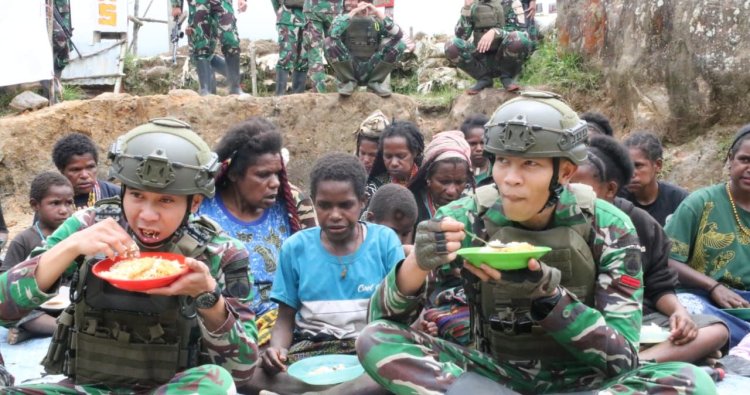 NDUGA - Kehangatan persaudaraan membentang di Distrik Yigi, Kabupaten Nduga, Papua Pegunungan, saat Satgas Yonif 400/Banteng Raiders Pos Yigi menggelar acara makan bersama warga pada Selasa (25/11/2025). Momen ini bukan sekadar santap hidangan, tetapi wujud nyata kemanunggalan TNI bersama rakyat di tengah bentangan alam pegunungan Papua.