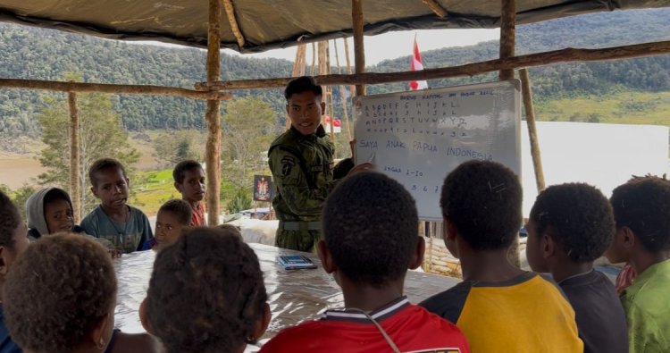 Namun, kondisi ini tak membuat prajurit Pos Wamitu berdiam diri. Dengan sigap, mereka membuka pintu pos sebagai ruang kelas darurat. Papan tulis sederhana menjadi saksi bisu semangat para prajurit dalam mentransfer ilmu. Huruf kapital, huruf kecil, angka, hingga latihan membaca diajarkan dengan sabar di Kampung Wamitu, Distrik Goa Balim, Kabupaten Lanny Jaya, Papua Pegunungan.