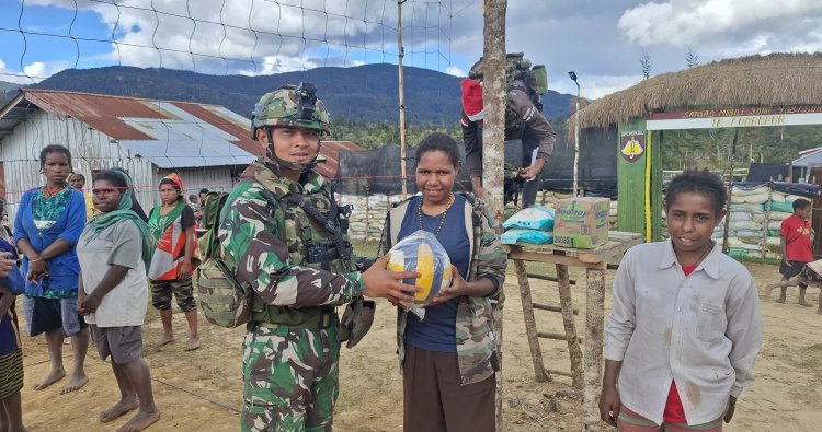 LANNY JAYA - Di tengah kehangatan pegunungan Papua, tepatnya di Kampung Tumbupur, Distrik Kuyawage, Lanny Jaya, sebuah inisiatif sederhana namun bermakna hadir untuk merajut kebersamaan masyarakat. Satgas Yonif 408/Sbh, melalui Pos Tumbupur, pada Senin (15/12/2025) lalu, menyerahkan seperangkat perlengkapan olahraga bola dan net voli kepada warga. Ini bukan sekadar bantuan fisik, melainkan sebuah jembatan untuk membangun ikatan sosial yang lebih erat dan mendorong gaya hidup sehat di jantung Papua Pegunungan.