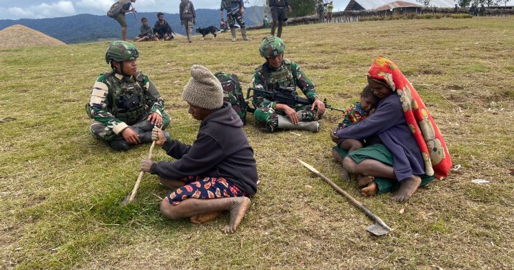 Di tengah lanskap pedalaman Papua yang memukau, personel Satgas dari Pos Nenggeagin menyambangi rumah-rumah warga, menciptakan suasana dialog yang tulus. Tawa ringan dan cerita kehidupan sehari-hari mengalir, mempererat ikatan emosional antara prajurit dan masyarakat.