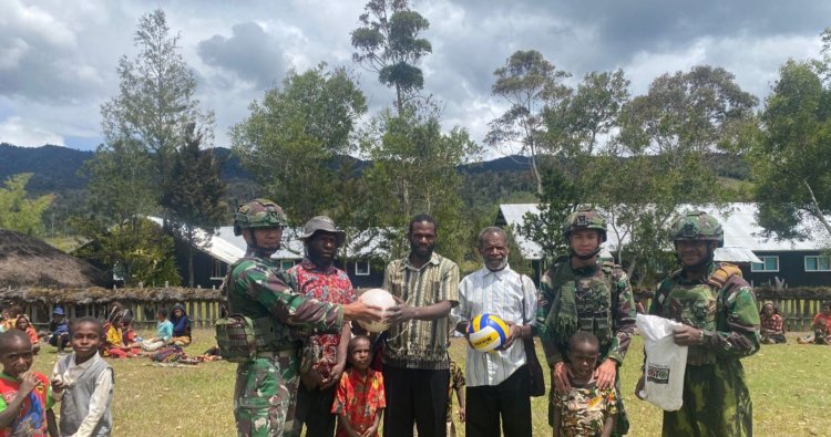 Satgas Yonif 408/Sbh Pos TK Andugume tak hanya menjalankan tugas menjaga keamanan, tetapi juga merangkul masyarakat. Kali ini, bola voli diserahkan kepada perwakilan pemuda, sementara bola sepak menjadi hadiah keceriaan bagi anak-anak setempat. Bantuan ini merupakan wujud nyata kepedulian Satgas untuk mendorong aktivitas fisik yang sehat sekaligus mempererat tali persaudaraan antara TNI dan rakyat di wilayah yang mereka jaga.
