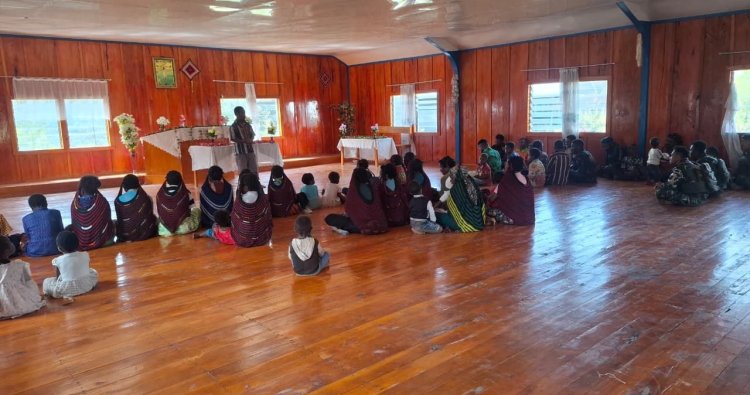 Suasana khidmat menyelimuti gereja sederhana Kampung Tumbupur. Para prajurit dan warga duduk berdampingan, merangkai doa dan pujian tanpa sekat. Momen ini menjadi ruang perjumpaan spiritual yang tulus, menumbuhkan ketenangan dan harapan akan kedamaian di hati setiap insan.