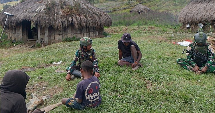 Suasana hangat terasa saat para prajurit duduk lesehan berdampingan dengan warga di antara honai-honai sederhana. Tawa riang anak-anak berbaur dengan obrolan santai para orang tua, menciptakan pemandangan akrab yang melampaui sekat aparat dan masyarakat. Momen ini menjadi sarana berharga bagi Satgas untuk memahami denyut nadi kehidupan sehari-hari dan aspirasi warga.