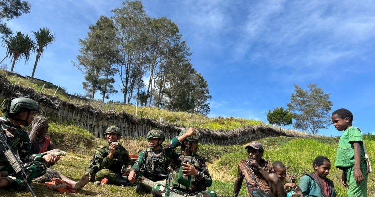 LANNY JAYA - Di tengah keheningan pedalaman Papua Pegunungan, tepatnya di Kampung Wamitu, Distrik Goa Balim, Kabupaten Lanny Jaya, Sabtu (3/1/2026), prajurit Satgas Yonif 408/Suhbrastha (Sbh) Titik Kuat (TK) Wamitu menunjukkan sisi kemanusiaan yang hangat. Mereka tidak datang sebagai penegak disiplin semata, melainkan sebagai sahabat, duduk sejajar, dan bercengkerama akrab dengan warga lokal. Suasana sederhana namun penuh kehangatan ini menjadi saksi bisu upaya membangun jembatan kepercayaan yang kokoh.