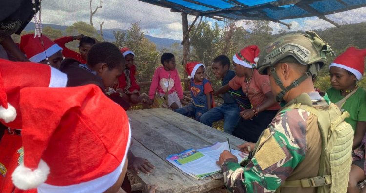 INTAN JAYA - Di tengah hamparan keindahan alam Intan Jaya, Satuan Tugas (Satgas) Batalyon Infanteri (Yonif) 500/Sikatan menunjukkan kepedulian mendalam terhadap tumbuh kembang generasi penerus Papua. Melalui program bertajuk SAGU (Sikatan Ajak Generasi Maju), para prajurit TNI ini hadir di Titik Kuat (TK) Silatuga, Kampung Silatuga, Distrik Sugapa, pada Rabu, (17/12/2025), dengan misi mulia menanamkan semangat belajar dan nilai-nilai keimanan kepada anak-anak setempat.