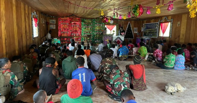 PUNCAK - Di tengah denyut kehidupan pedalaman Papua Pegunungan, kehadiran aparat TNI di Kampung Marilakuin, Distrik Wangbe, Kabupaten Puncak, tak sekadar menjadi garda terdepan penjaga keamanan. Lebih dari itu, personel Pos Marilakuin dari Satgas Pamtas RI–PNG Mobile Yonif 732/Banau telah membuktikan diri sebagai bagian tak terpisahkan dari denyut sosial dan spiritual masyarakatnya. Bukti nyata itu terlihat pada Minggu (4/1/2026), ketika mereka turut serta dalam sebuah ibadah bersama warga setempat.