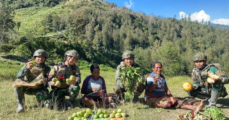 PUNCAK - Di tengah hamparan kebun yang subur di Kampung Dangbet, Distrik Beoga, Kabupaten Puncak, Papua Tengah, sebuah inisiatif sederhana namun berdampak besar tengah bergulir. Satgas Pamtas RI–PNG Yonif 732/Banau, melalui Pos Dangbet, pada Selasa (27/1/2026), kembali membuktikan komitmennya dalam menggerakkan roda ekonomi masyarakat perbatasan melalui program bertajuk 'Rosita' atau Borong Hasil Tani.