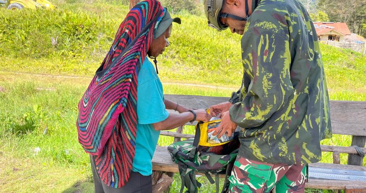 PUNCAK - Kepedulian mendalam terhadap kesehatan masyarakat di garis depan perbatasan terus mengalir dari Satgas Pamtas RI–PNG Mobile Yonif 732/Banau. Melalui Pos Wangbe, prajurit TNI dengan sigap menggelar 'Pastoor' atau pelayanan kesehatan gratis bagi penduduk Kampung Wangbe, Distrik Wangbe, Kabupaten Puncak, pada Sabtu (31/1/2026).