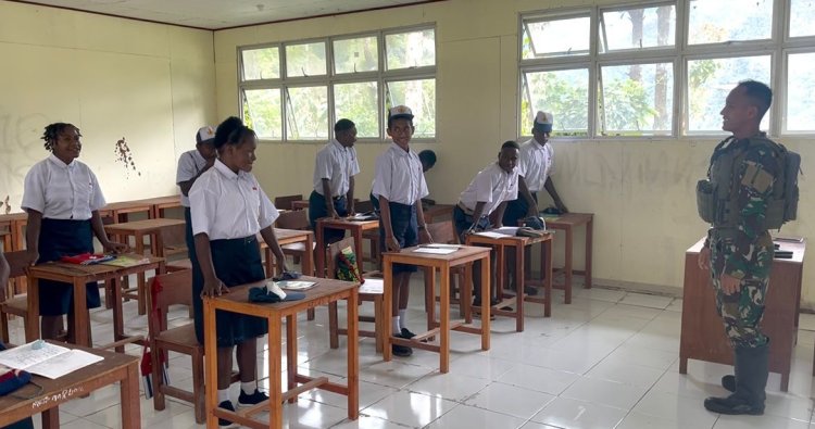 Kehadiran mereka membuktikan bahwa cinta tanah air tidak hanya dijaga di medan tugas, tetapi juga ditanamkan di ruang kelas sederhana di jantung Papua.