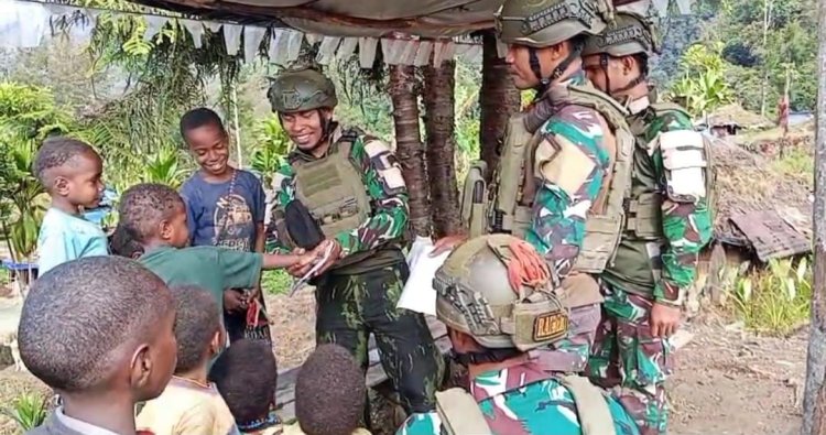 PUNCAK - Di tengah keheningan Distrik Beoga, Kabupaten Puncak, Papua Tengah, sebuah inisiatif mulia tengah bergema. Satuan Tugas Pengamanan Perbatasan (Satgas Pamtas) RI–PNG Yonif 732/Banau tak hanya hadir menjaga kedaulatan bangsa, namun juga merajut masa depan generasi penerus melalui program 'Papua Melek'. Kegiatan yang berpusat di Pos Ambobera, Kabupaten Puncak, ini menjadi mercusuar harapan bagi anak-anak di Kampung Ambobera untuk menguasai dasar-dasar literasi dan Bahasa Indonesia.