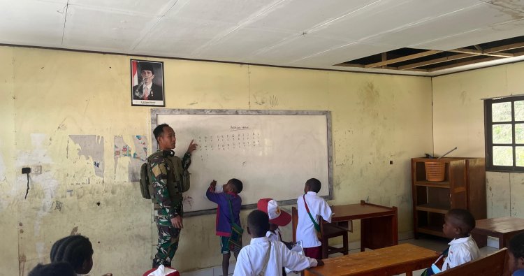 PUNCAK - Di tengah keindahan alam Papua Puncak yang memesona, tepatnya di Distrik Beoga, Kabupaten Puncak, sebuah harapan baru tengah disemai. Satgas Pamtas RI–PNG Yonif 732/Banau tak hanya mengemban tugas menjaga kedaulatan negeri, namun juga merambah ke ranah pendidikan, menebar benih ilmu di Sekolah Dasar Kampung Milawak. Pada Senin (12/1/2026) lalu, suasana kelas SD Milawak seketika berubah menjadi arena belajar yang penuh keceriaan berkat kehadiran para prajurit yang berperan sebagai 'Gadik' atau Tenaga Pendidik.