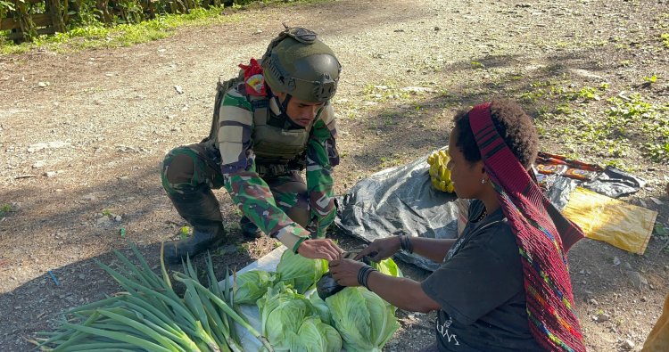 PUNCAK - Menjelang senja di Kampung Julukoma, Distrik Beoga, Kabupaten Puncak, Papua Tengah, Selasa (20/1/2026) sore itu terasa berbeda. Bukan hanya suara alam yang mendominasi, namun juga kehangatan interaksi antara anggota Satgas Pamtas RI–PNG Mobile Yonif 732/Banau dengan para petani lokal. Melalui inisiatif bertajuk Rosita (Borong Hasil Tani), personel Pos Julukoma hadir langsung di tengah kebun warga, bukan untuk menjaga garis batas, melainkan untuk merajut asa ekonomi masyarakat.