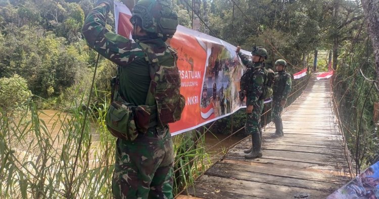LANNY JAYA - Di tengah keheningan pedalaman Papua, tepatnya di Kampung Tumbupur, Distrik Kuyawage, Kabupaten Lanny Jaya, sebuah pesan kuat tentang persatuan dan kebangsaan ditancapkan. Pada Kamis (20/11/2025), personel Satgas Yonif 408/Sbh melalui Pos Tumbupur menggelar aksi sederhana namun sarat makna: memasang banner Merah Putih di Jembatan Tumbupur. Banner bertuliskan 'Papua adalah NKRI, Harus Dijaga dan Dilindungi' kini membentang, menjadi saksi bisu semangat yang ingin ditanamkan.