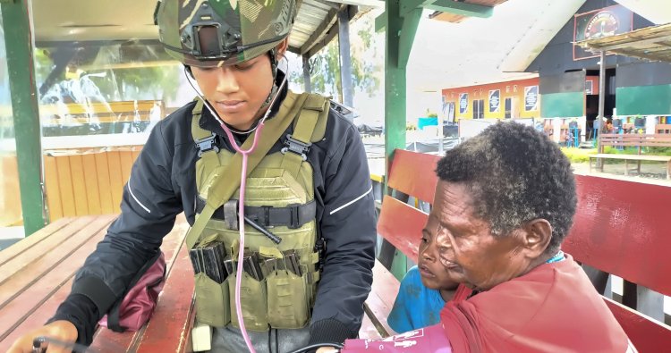 Sebuah foto yang mengabadikan momen tersebut, memperlihatkan ketelitian Serda Prama saat memeriksa tekanan darah Mama Yulistin dengan ditemani seorang anak kecil, menjadi simbol nyata kehadiran TNI yang humanis siap melayani, merangkul, dan menguatkan setiap individu di tanah Papua.