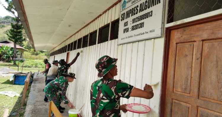 Wamena — Satgas TNI Manunggal Membangun Desa (TMMD) ke-126 Kodim 1702/Jayawijaya melaksanakan kegiatan pengecatan di SD Inpres Algonik, Distrik Pyramid, Kabupaten Jayawijaya. Kegiatan ini merupakan program tambahan yang mencerminkan kepedulian Kodim 1702/Jayawijaya terhadap dunia pendidikan, khususnya di wilayah pedalaman Papua Pegunungan. Senin (13/10/2025).