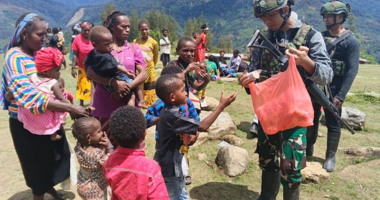 INTAN JAYA - Di tengah keheningan pegunungan Intan Jaya, Papua Tengah, hangatnya kepedulian terasa menyelimuti Kampung Pogapa. Personel Satuan Tugas Pengamanan Perbatasan (Satgas Pamtas) RI-PNG Mobile Yonif 113/Jaya Sakti (JS), melalui Pos Pogapa, menyulut senyum ceria anak-anak setempat dengan membagikan bingkisan makanan ringan berupa roti pada Senin (2/2/2026).