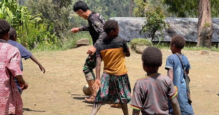 INTAN JAYA - Senyum merekah di wajah anak-anak Kampung Zanepa, Intan Jaya, Papua Tengah, pada Selasa (9/12/2025). Lapangan Gereja Advent yang biasanya sunyi, seketika bertransformasi menjadi arena penuh tawa dan semangat berkat inisiatif Satgas Pamtas RI–PNG Mobile Yonif 113/Jaya Sakti (JS) melalui Pos Zanepa. Permainan sepak bola sederhana yang digagas para prajurit ini berhasil menghadirkan kehangatan dan kegembiraan luar biasa, merajut kedekatan antara anggota TNI dan generasi muda Papua.