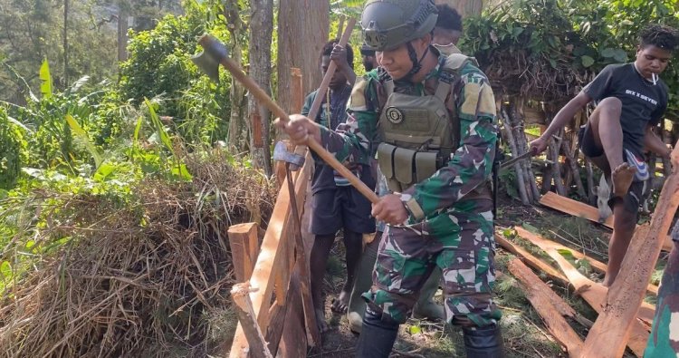 PUNCAK - Di tengah lanskap Kabupaten Puncak, Papua Tengah, sebuah sinergi tak terduga terjalin. Personel Satgas Pamtas RI-PNG Yonif 732/Banau tak hanya menjaga batas negara, tetapi juga merajut kebersamaan dengan warga Kampung Julukoma, Distrik Beoga. Kamis lalu, (27/11/2025), prajurit pos ini bahu-membahu dengan masyarakat membangun rumah adat Honai, sebuah simbol kehangatan dan kebersamaan keluarga.