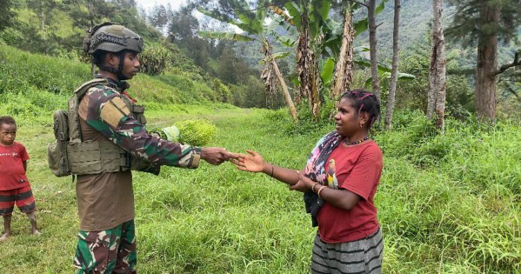 PUNCAK - Di tengah denyut kehidupan Kampung Jambul, Distrik Beoga, Puncak, Papua Tengah, aroma kebersamaan dan harapan membumbung tinggi. Kamis (27/11/2025), prajurit TNI dari Satgas Pamtas RI-PNG Yonif 732/Banau tidak hanya menjaga perbatasan, tetapi juga menyentuh hati warga melalui program unik: ROSITA (Borong Hasil Tani). Mereka berbondong-bondong membeli sayuran segar, ubi jalar manis, singkong legit, pisang ranum, dan berbagai hasil bumi lainnya langsung dari tangan para petani.