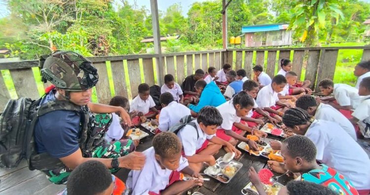 Program ini menjadi bukti nyata kepedulian Satgas terhadap anak-anak di wilayah terpencil Papua, yang kerap kali kesulitan mengakses asupan gizi seimbang. Dengan ketulusan yang terpancar dari setiap gerakan, para prajurit memasak dan menyajikan makanan bergizi, menanamkan harapan baru di tengah keterbatasan yang ada.