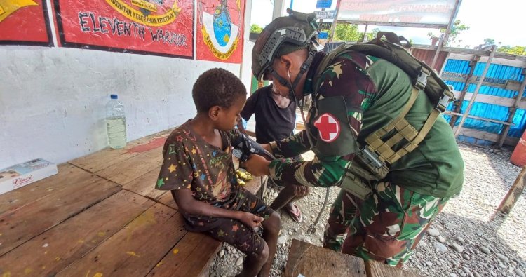 YAHUKIMO - Di tengah bentangan alam Papua yang mempesona namun penuh tantangan, personel kesehatan dari Satgas Pamtas Marinir RI-PNG Mobile Yonif 1 Marinir kembali membuktikan dedikasi mereka. Pada Jumat pagi, (12/12/2025), tim medis dari Pos Camar tak gentar melangkahkan kaki menuju Kampung Tomon, sebuah permukiman terpencil di garis batas negara, demi mengabdikan diri pada kesehatan warga.