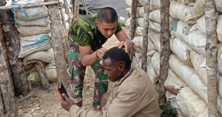 INTAN JAYA - Di tengah hamparan alam Intan Jaya yang memukau, kehadiran Satgas Pamtas RI–PNG Mobile Yonif 113/Jaya Sakti (JS) di Pos Kendetapa membawa senyum dan kehangatan bagi warga Kampung Kendetapa, Distrik Homeyo. Pada Jumat, (23/1/2026), sebuah kegiatan sederhana namun penuh makna digelar: layanan cukur rambut gratis.
