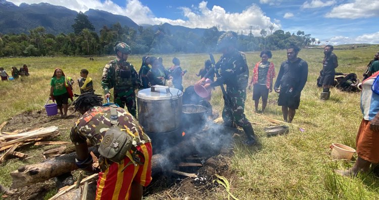 LANNY JAYA - Di tengah kesedihan yang menyelimuti Kampung Nenggeagin, Distrik Nenggeagin, Kabupaten Lanny Jaya, Papua Pegunungan, kehadiran Satuan Tugas (Satgas) Yonif 408/Suhbrastha (Sbh) memberikan warna kepedulian yang menghangatkan. Melalui program Komunikasi Sosial (Komsos), personel Titik Kuat (TK) Nenggeagin tak hanya menjadi tamu, tetapi berbaur erat dengan warga dalam sebuah kegiatan yang sarat makna: memasak dan berdoa bersama untuk mengenang almarhum Matias Tabuni.