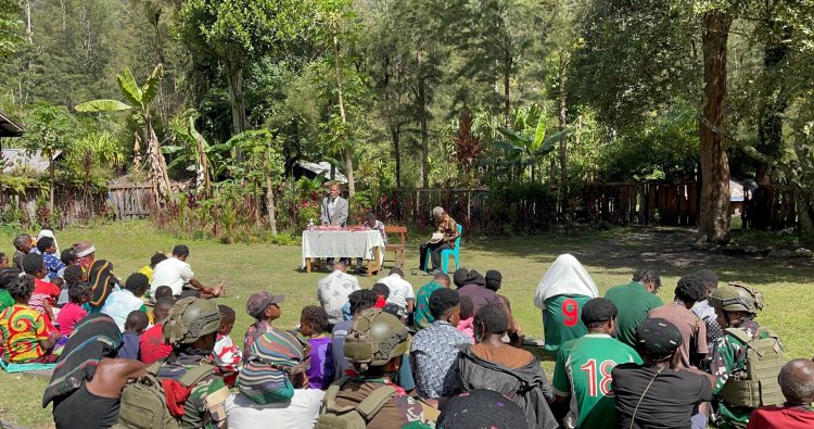 PUNCAK - Di tengah keheningan pegunungan Kampung Julukoma, Distrik Beoga, Kabupaten Puncak, Papua Tengah, pada Minggu (16/11/2025), terjalin sebuah momen kebersamaan yang menyentuh hati. Personel Pos Julukoma dari Satgas Pamtas RI-PNG Yonif 732/Banau tak hanya menjalankan tugas pengamanan, tetapi juga merangkul erat masyarakat melalui kegiatan ibadah Minggu bersama.