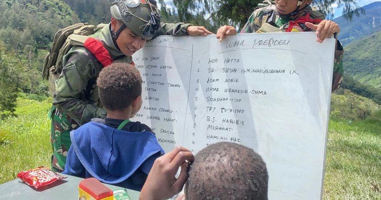 PUNCAK - Di tengah hamparan alam Papua yang megah, semangat mencerdaskan kehidupan bangsa terus bergema. Personel Tentara Nasional Indonesia (TNI) dari Satuan Tugas (Satgas) Pamtas RI–PNG Yonif 732/Banau tak kenal lelah hadir di pelosok negeri. Kali ini, Pos Dangbet menjadi saksi bisu pengabdian luar biasa, di mana para prajurit dengan tulus berbagi ilmu kepada anak-anak Kampung Dangbet, Distrik Beoga, Kabupaten Puncak, pada Senin (17/11/2025).
