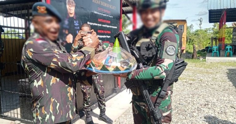 YAHUKIMO - Di tengah lanskap Yahukimo yang mempesona namun penuh tantangan, sebuah pemandangan hangat terhampar pada Jumat (14/11/2025). Satgas Pamtas RI–PNG Mobile Yonif 1 Marinir tak hanya menjalankan tugas penjagaan, tetapi juga menebar kehangatan dengan membawa bingkisan istimewa berupa tumpeng ke Pos Brimob di Distrik Dekai. Momen ini bukan sekadar kunjungan biasa, melainkan wujud nyata perayaan Hari Ulang Tahun Korps Brimob Polri yang ke-80, sekaligus peneguhan ikatan sinergitas antara TNI dan Polri di tanah Papua Pegunungan.