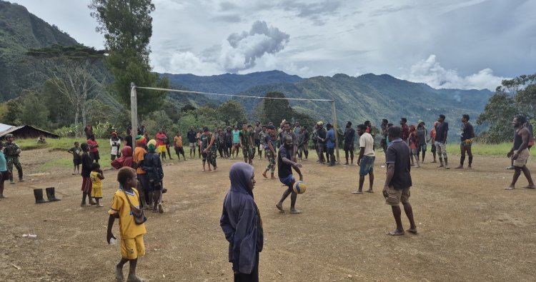INTAN JAYA - Di tengah teriknya matahari Papua Tengah, lapangan Kampung Kendetapa, Distrik Homeyo, Kabupaten Intan Jaya, pada Sabtu (06/12/2025) berubah menjadi arena penuh tawa dan semangat. Satuan Tugas (Satgas) Pamtas RI–PNG Mobile Yonif 113/Jaya Sakti (JS) Pos Kendetapa tak hanya hadir sebagai penjaga keamanan, namun juga sebagai pemersatu masyarakat melalui kegiatan olahraga voli bersama warga setempat.