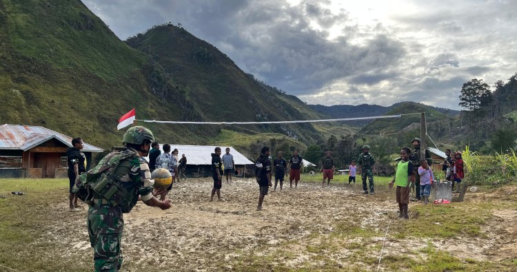 LANNY JAYA - Di tengah dinginnya udara pegunungan Lanny Jaya, Papua, lapangan voli berlumpur di Kampung Wunabunggu pada Rabu (26/11/2025) seketika berubah menjadi panggung kehangatan. Satgas Yonif 408/Suhbrastha (SBH) tak hanya hadir sebagai penjaga, namun larut dalam gelak tawa bersama warga setempat melakoni pertandingan voli yang sederhana namun penuh makna. Sorak-sorai riuh menggantikan formalitas, tepukan tangan meriah mengiringi setiap poin yang tercipta, menciptakan simfoni kebersamaan di bawah langit Papua yang membentang luas.
