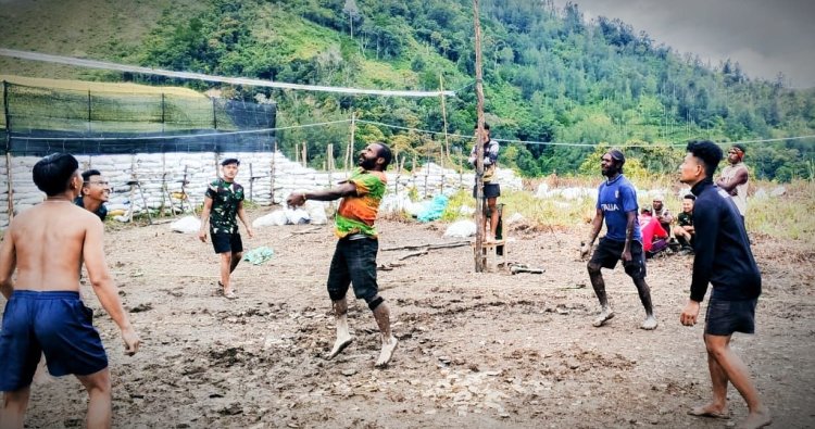 INTAN JAYA - Di tengah teriknya matahari di Distrik Homeyo, Kabupaten Intan Jaya, tawa canda dan sorak-sorai membahana. Inilah momen hangat dari program Jaya Sakti Menyapa yang digagas Satgas Pamtas RI-PNG Mobile Yonif 113/JS. Pada Kamis (20/11/2025), lapangan kampung Bilai menjadi saksi semangat persaudaraan yang terjalin melalui pertandingan bola voli persahabatan antara personel Satgas dan warga setempat.
