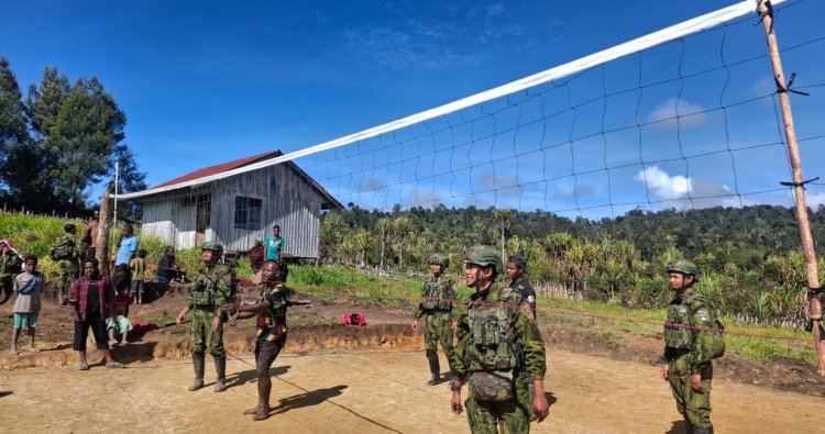 LANNY JAYA - Suasana hangat membuncah di Lapangan Kampung Tumbupur, Distrik Kuyawage, Kabupaten Lanny Jaya, Papua Pegunungan, pada Senin (2/2/2026). Di sana, prajurit Satgas Yonif 408/Sbh tak lagi berjarak dengan masyarakat setempat. Lapangan sederhana itu menjadi saksi bisu momen akrab saat bola voli melambung, menyatukan langkah TNI dan warga dalam permainan yang penuh tawa dan sorak semangat.