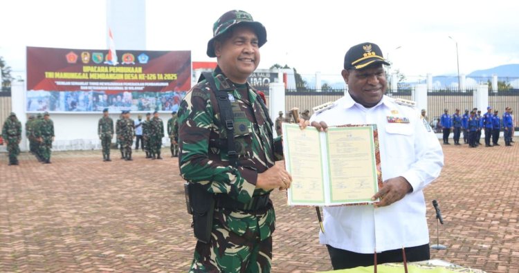 Wamena – Sebagai wujud dukungan penuh terhadap program pembangunan terpadu di wilayah Papua Pegunungan, Wadan Yonif 756/WMS Mayor Inf Marchel Rumansara menghadiri Upacara Pembukaan TNI Manunggal Membangun Desa (TMMD) Reguler Ke-126 TA 2025 Kodim 1702/Jayawijaya, bertempat di halaman Kantor Bupati Jayawijaya, Jl. Yos Sudarso, Distrik Wamena, Rabu (8/10).