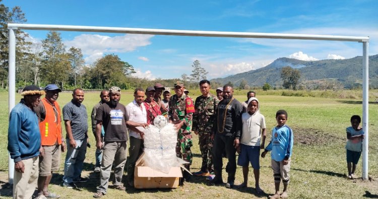 Wamena – Dalam rangka mendukung pengembangan potensi generasi muda dan mempererat tali persaudaraan dengan masyarakat, Satgas TMMD Ke-126 Kodim 1702/Jayawijaya menyerahkan bantuan berupa bola dan jaring gawang kepada pemuda Kampung Algonik, Distrik Piramid, Kabupaten Jayawijaya. Jumat (17/10/2025).